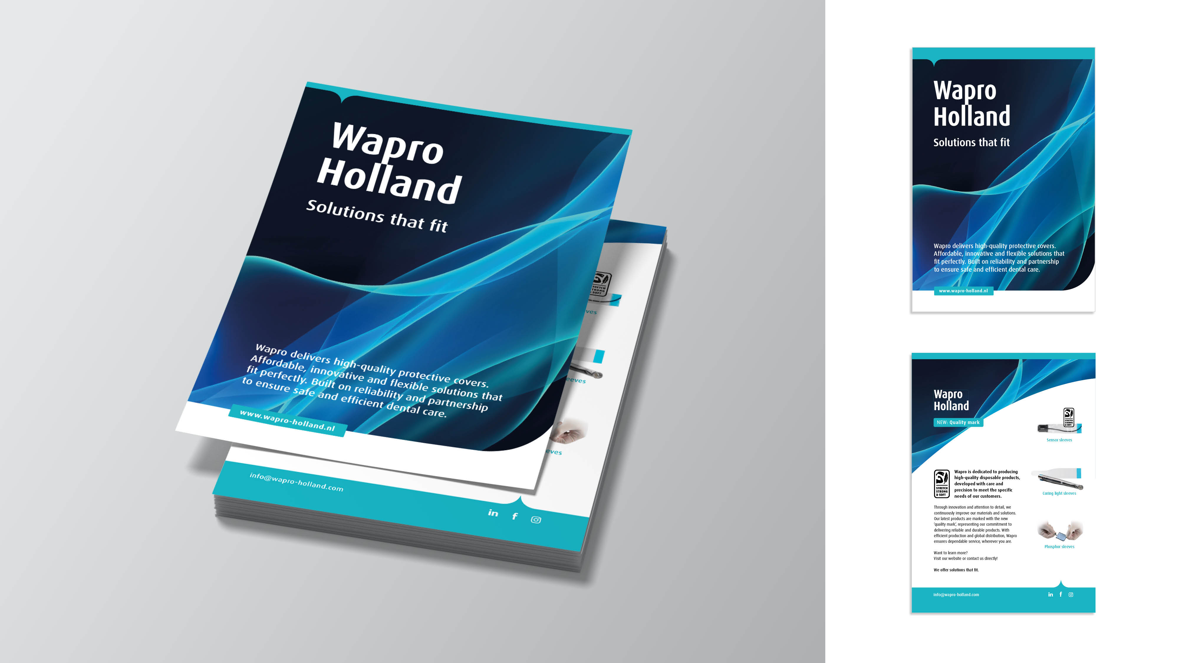 Wapro Holland ontwikkelt hoogwaardige disposable beschermhoesjes voor de tandheelkunde, met focus op veiligheid en hygiëne. Voor een innovatief nieuw materiaal wilde Wapro een uniek kwaliteitsmerk laten ontwikkelen. Merkrijk adviseerde om deze stap aan te grijpen voor een volledige rebranding. Een krachtige manier om het nieuws te koppelen aan een vernieuwde uitstraling.